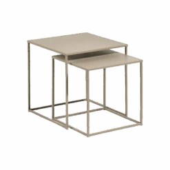 Kleine sandfarbene Tische, die überall in der Wohnung sehr dekorativ sind, z. B. im Wohnzimmer als Couchtisch-Set, im Flur oder im Schlafzimmer. Sie nehmen nicht viel Platz in Anspruch und lassen sich leicht umstellen.
