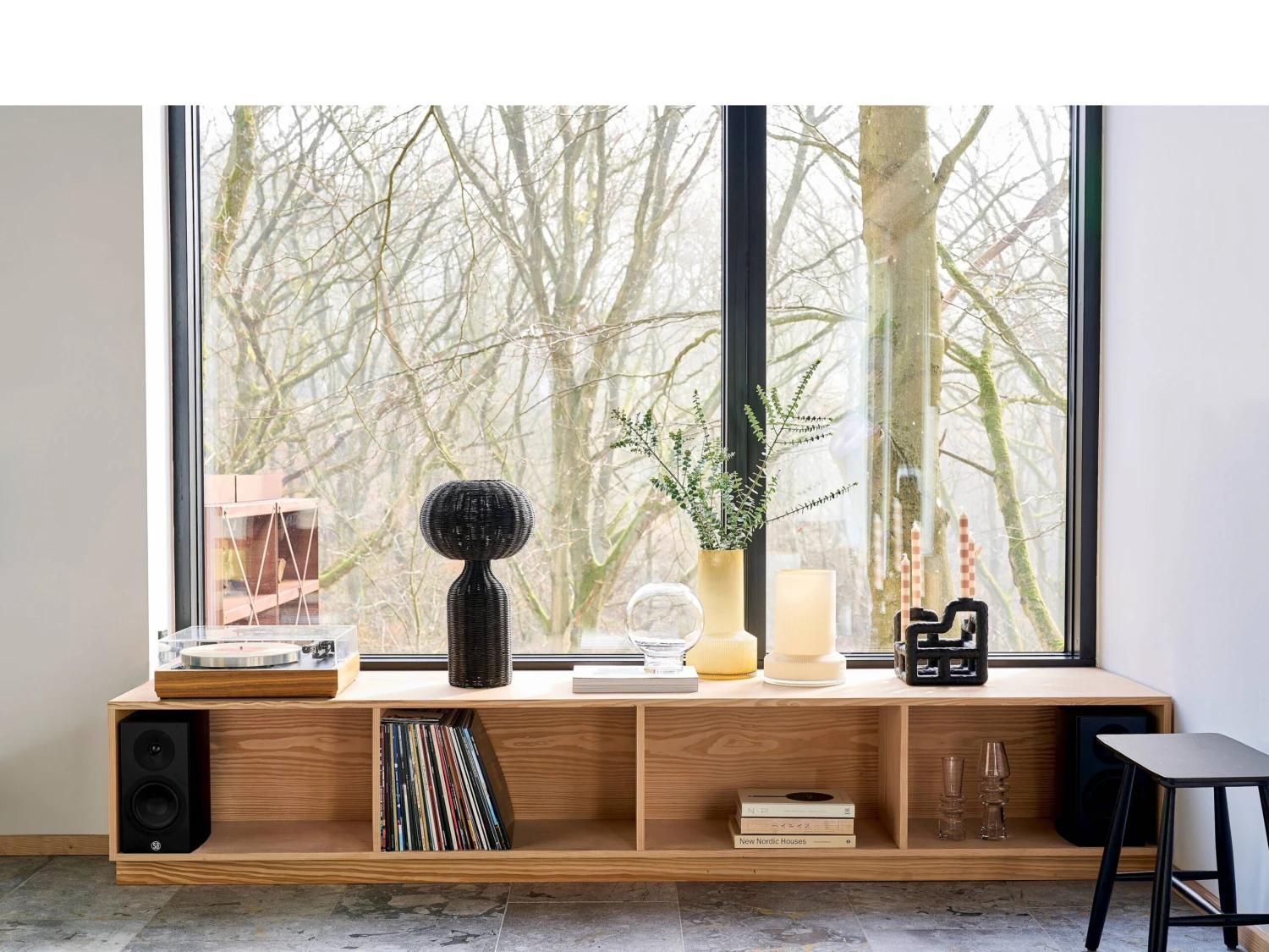 Hocker aus schwarzlackiertem Eichenholz. Das schlichte, stilvolle Design passt perfekt zu einer skandinavischen Einrichtung mit entspannter Atmosphäre, und der Hocker ist aus wunderschönem Eichenholz hergestellt. Für den Innenbereich geeignet.