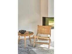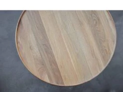 Couchtisch aus geölter Eiche. Der hübsche runde Tisch hat drei Beine und ist aus wunderschönem Eichenholz gearbeitet. Für den Innenbereich geeignet.