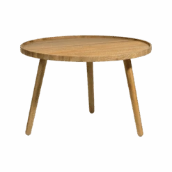 Couchtisch aus geölter Eiche. Der hübsche runde Tisch hat drei Beine und ist aus wunderschönem Eichenholz gearbeitet. Für den Innenbereich geeignet.