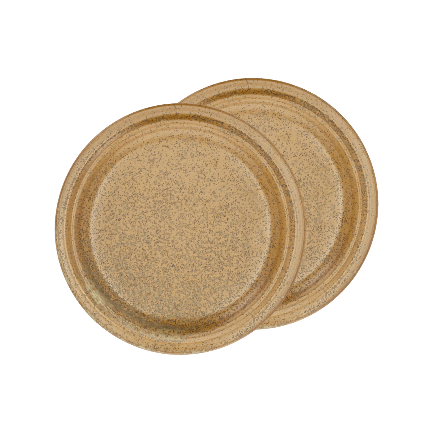 2 Mittagsteller aus Porzellan mit einer hübschen, reaktiven Glasur. Sie haben eine fantastische Optik mit einer einzigartigen Oberfläche, da jedes einzelne Produkt von Hand dekoriert wird und daher Farbe und Oberfläche variieren können. D 20 cm.