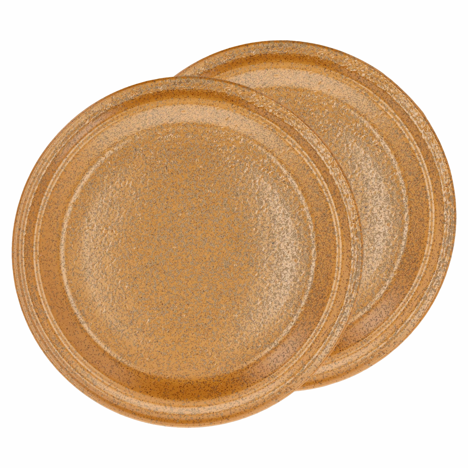2 Essteller aus Porzellan mit einer hübschen, reaktiven Glasur. Sie haben eine fantastische Optik mit einer einzigartigen Oberfläche, da jedes einzelne Produkt von Hand dekoriert wird und daher Farbe und Oberfläche variieren können. D 26 cm.