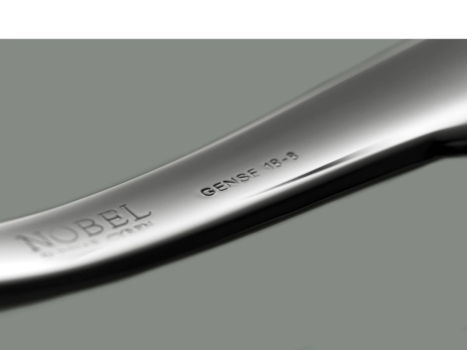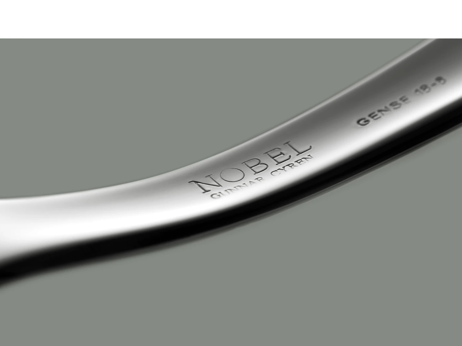 Nobel wurde von Gunnar Cyrén zum 90. Jahrestag der Nobelpreisverleihung entworfen und hat sich bereits zu einem Klassiker entwickelt. Das Besteck ist vom frühen 19. Jahrhundert und dem Silberbesteck Karl XIV. Johans inspiriert. Ein Besteck, das unverkennbar schwedisch ist, jedoch mit neuen Details, die überraschen. Nobel sorgt für das gewisse Extra – ob ganz traditionell mit weißen Tischdecken und Kandelabern oder modern und trendy mit innovativen Materialien und Tischdekorationen. Nobel ist aus Edelstahl mit leicht gebürstetem Schaft und hochglänzend poliertem Kopf hergestellt und wird noch immer bei der jährlichen Verleihung des Nobelpreises in Stockholm benutzt. Spülmaschinenfest.