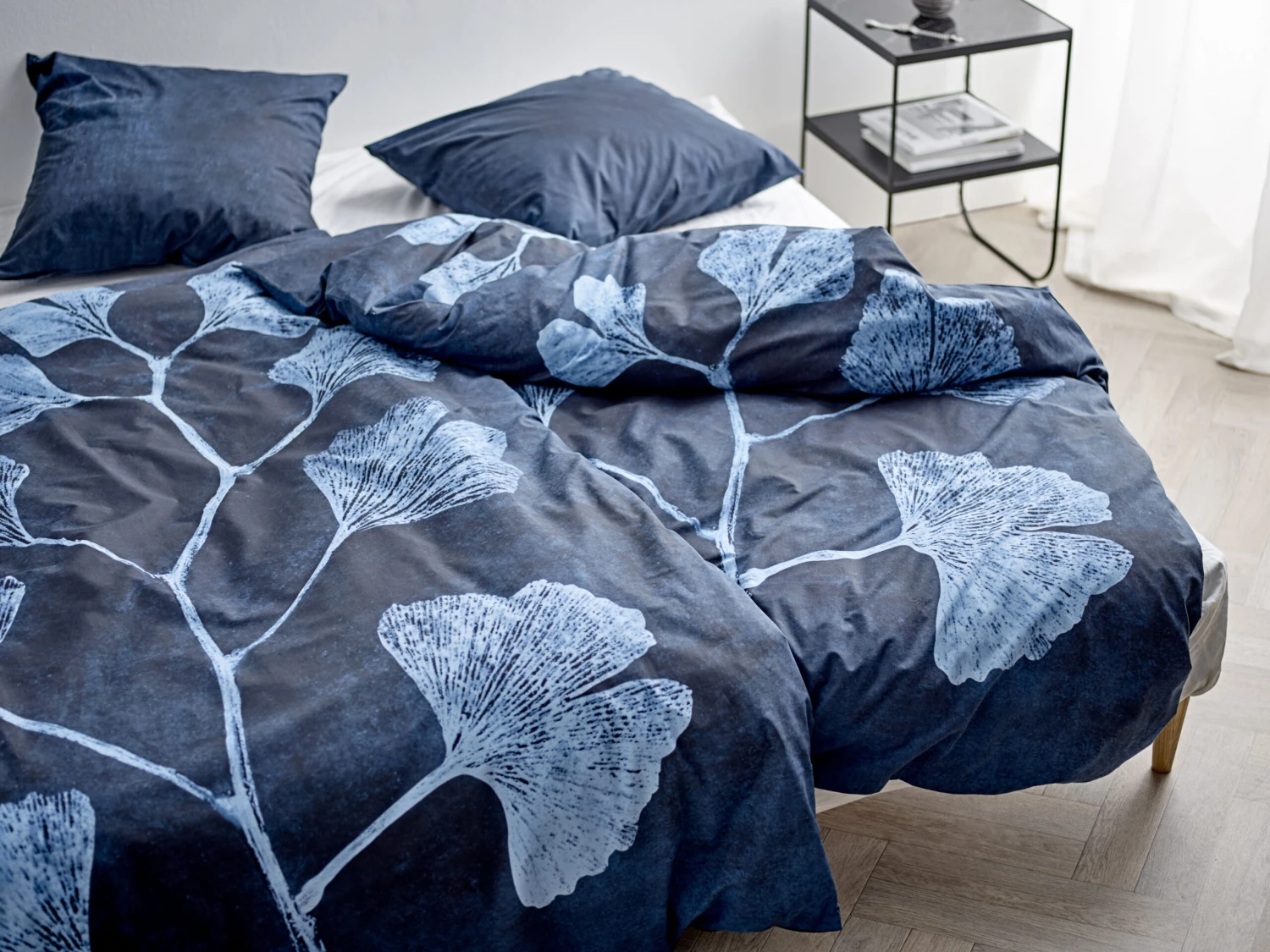 Ginkgo biloba ist der botanische Name für den Tempelbaum, der ursprünglich aus China stammt. Die fächerförmigen Blätter sind wunderschön und charakteristisch. Ein interessantes botanisches Motiv für die Einrichtung.