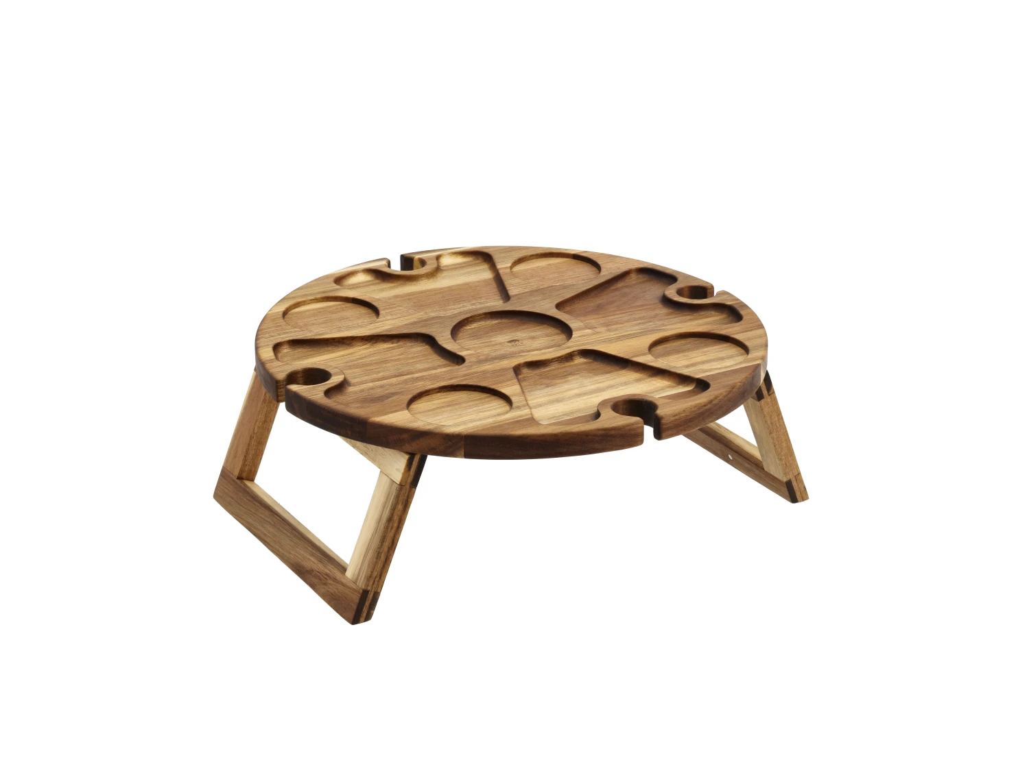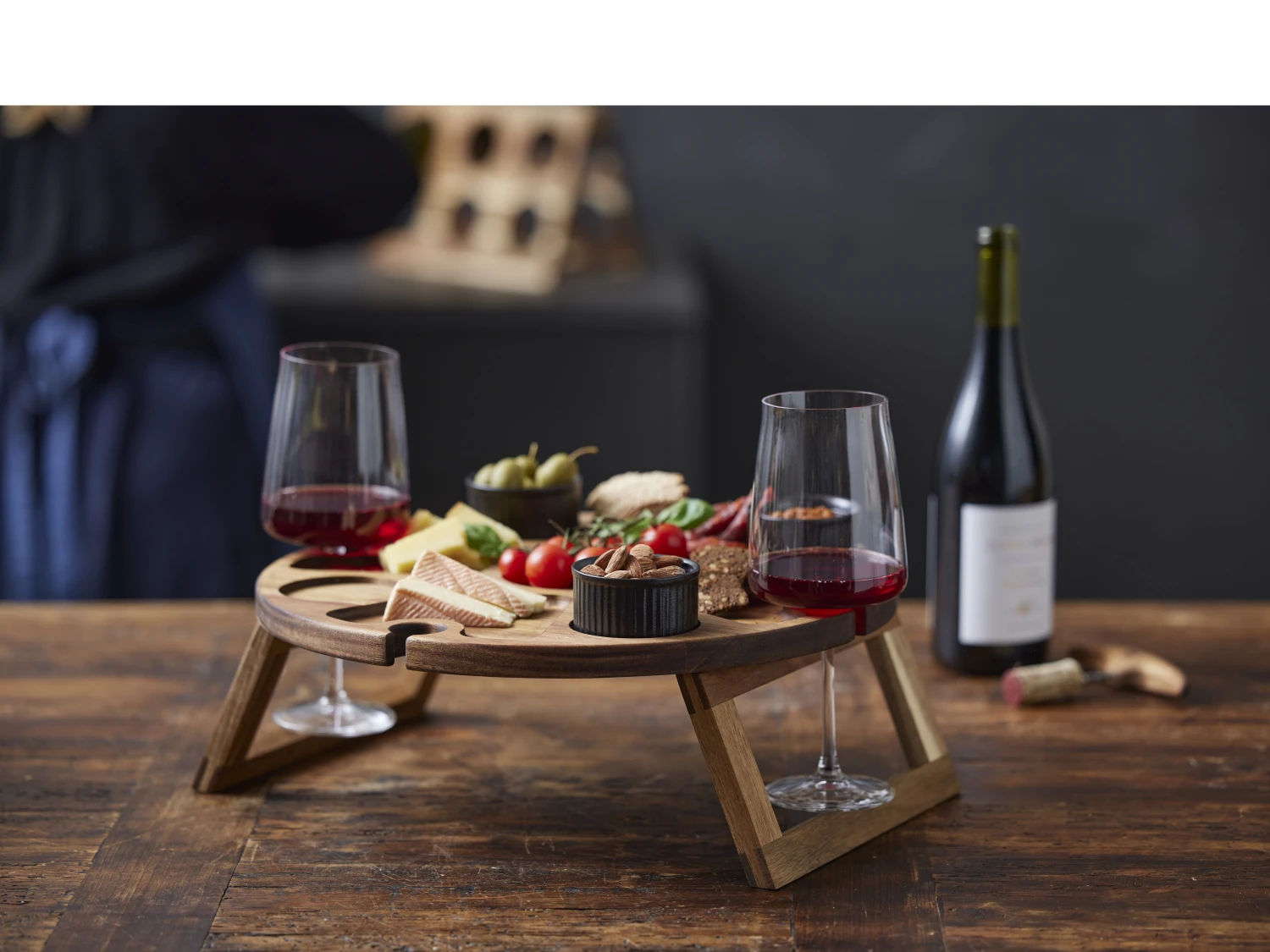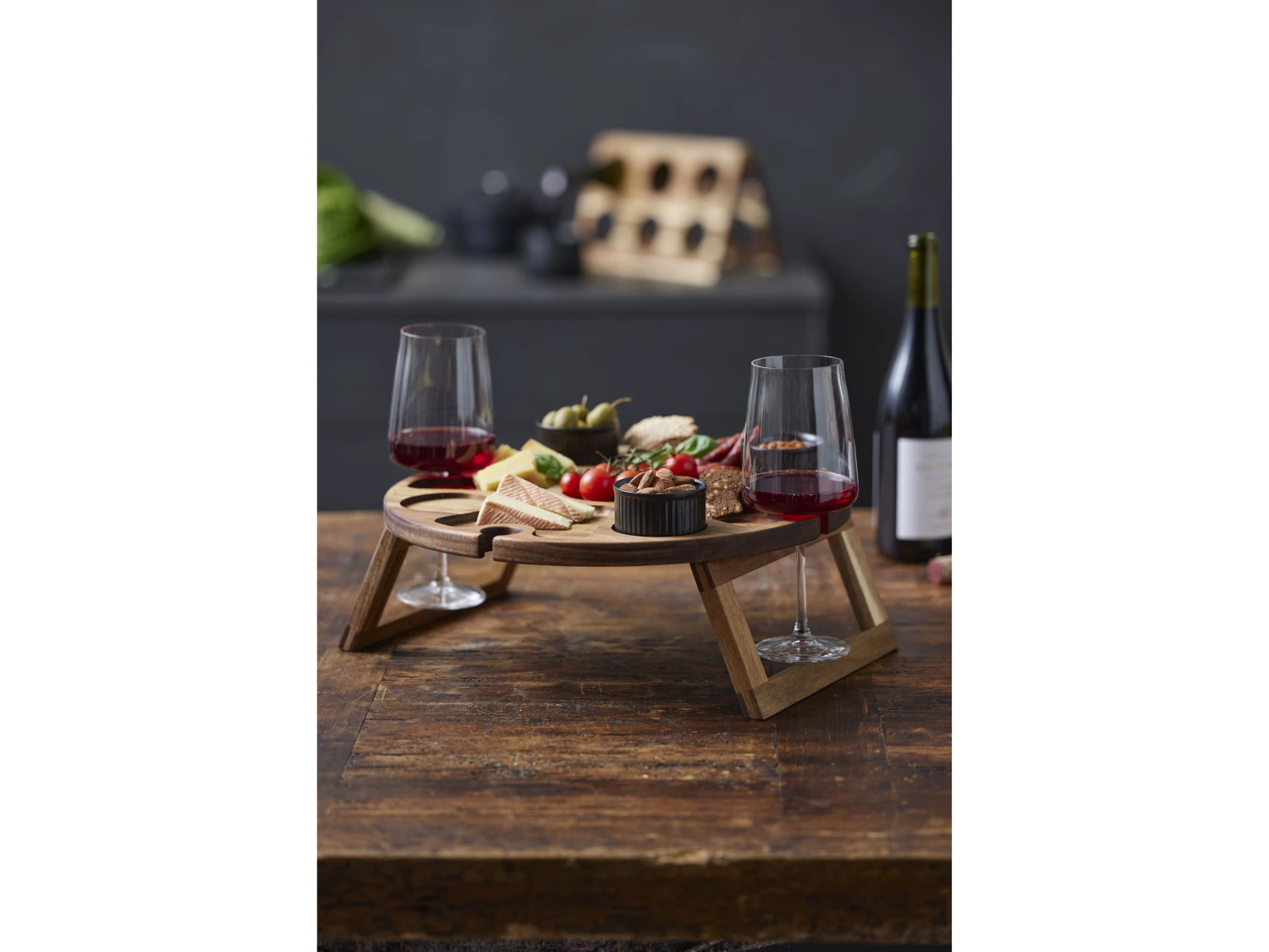 Nehmen Sie den praktischen Picknicktisch aus geöltem Akazienholz mit an den Strand oder in den Park, und Sie können eine gemütliche Mahlzeit genießen. Die Beine können ausgeklappt werden, sodass der Tisch etwas erhöht über dem Boden steht. In den Aussparungen des Tisches ist Platz für vier Weingläser, in der Mitte kann die Weinflasche stehen und die runden Aussparungen passen genau für die Auflaufförmchen oder Snack-Schalen von HOLM. Durchmesser 37,5 cm, Höhe 13,6 cm.