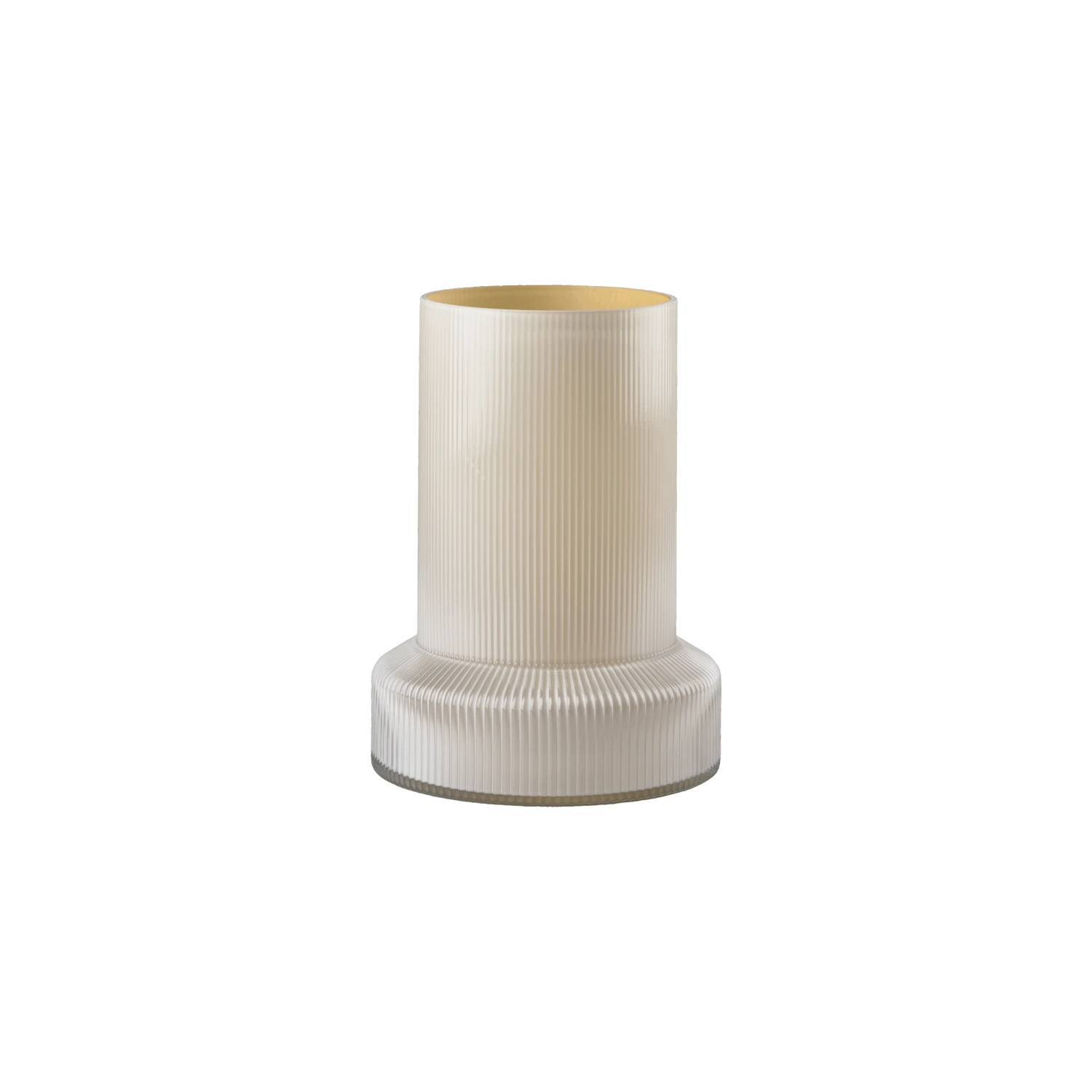 Hübsche mundgeblasene und handgefertigte Vase aus drei Glasschichten. Die äußere Schicht ist Klarglas, die mittlere Schicht ist honigfarben und die innere Schicht besteht aus weißem Glas. Stellen Sie eine LED-Kerze in die Vase – durch die Kombination der drei Glasfarben entsteht ein fantastisch weiches Licht. D 19 x H 34 cm. Mit warmem Wasser reinigen und dann mit einem weichen Tuch abtrocknen.