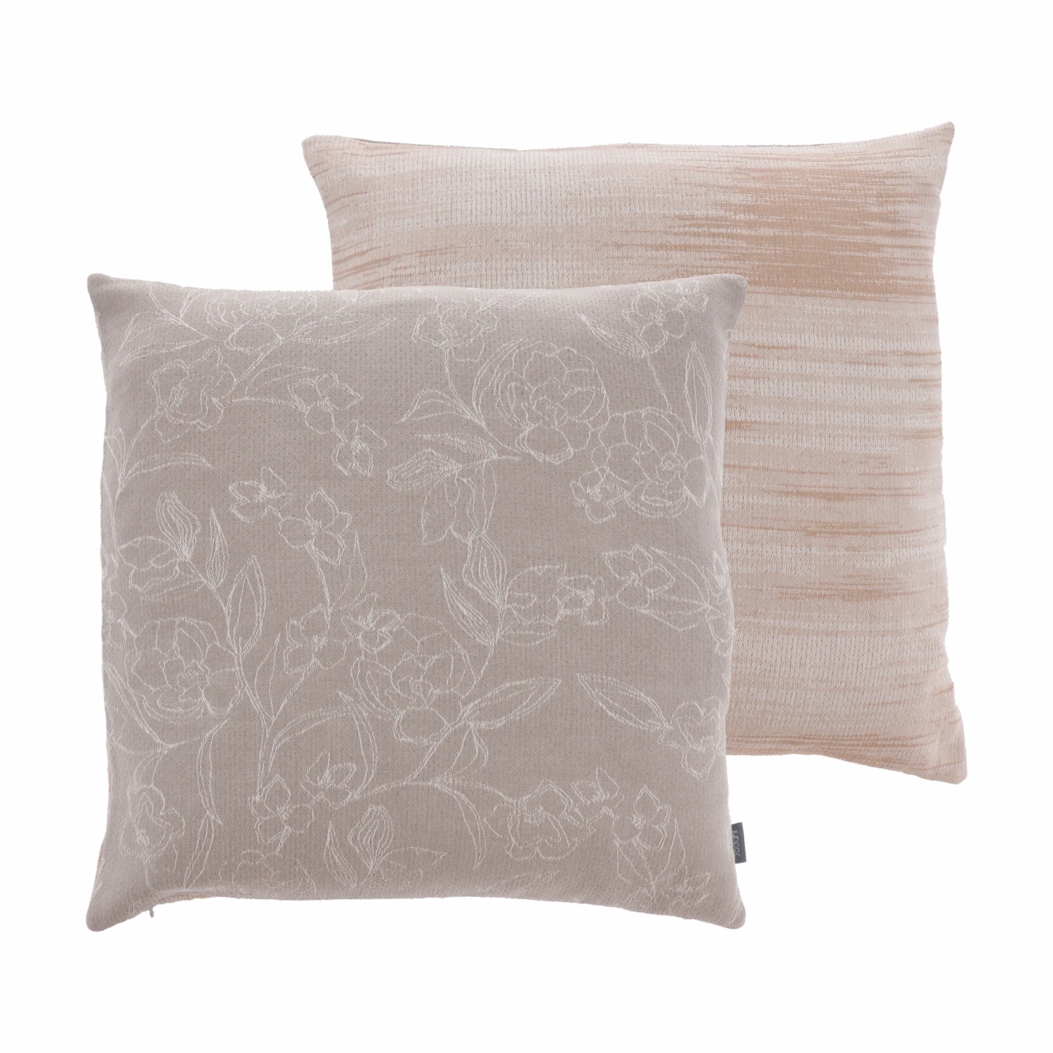 Die schlichten Blüten, mit nur einem Strich gezeichnet, bilden ein feines, fließendes und feminines Muster. Der handgezeichnete Stil und die ultrafeinen Linien auf dem monochromen Hintergrund sind beruhigend für das Auge. Sowohl das Kissen als auch das Plaid sind mit Doubleface-Effekt gearbeitet und die Rückseite zeigt ein hübsch graduiertes Melange-Motiv.