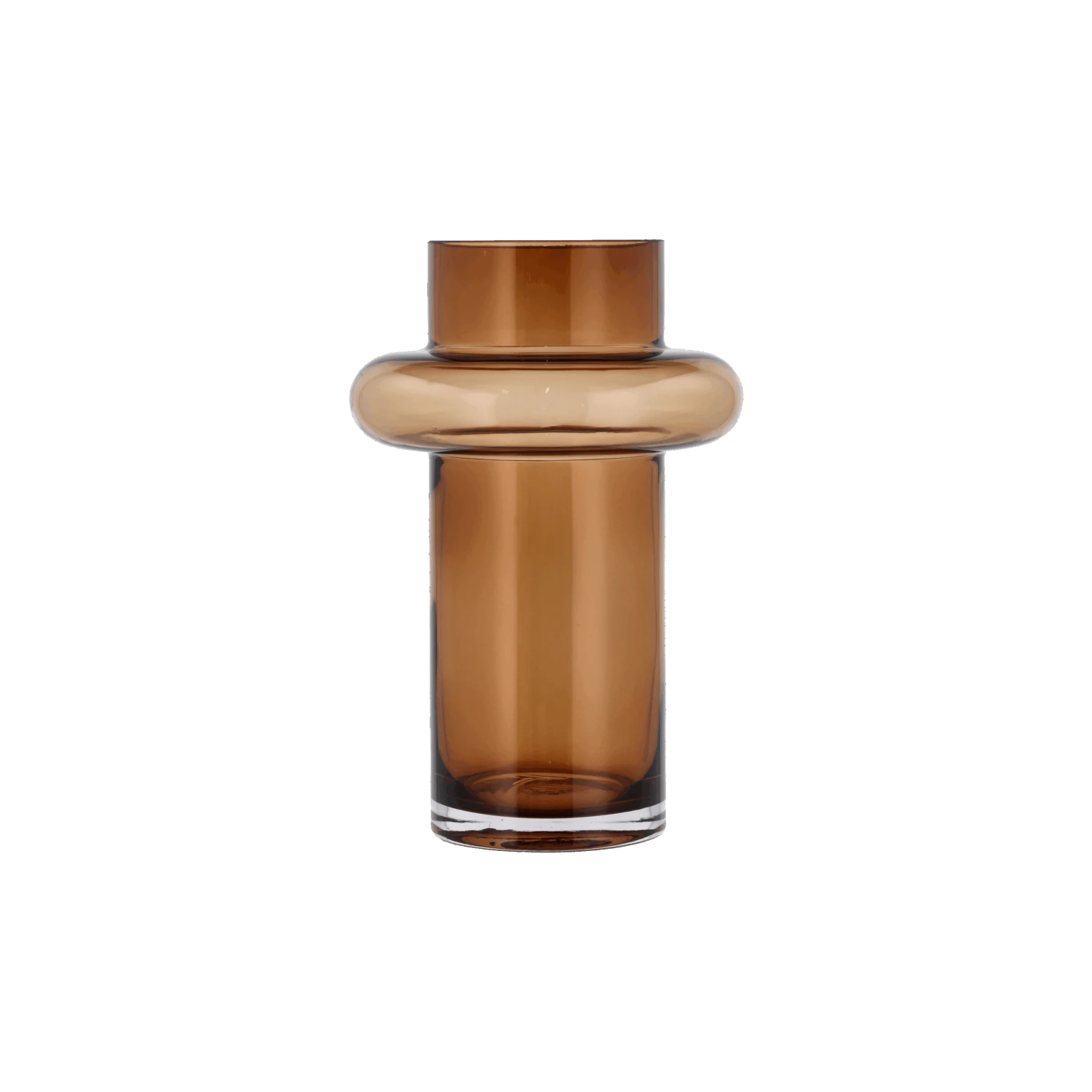 Die Tube Vase ist aus mundgeblasenem, durchgefärbtem Glas hergestellt und hat eine hübsche, geschliffene Kante. Die einzigartige Formsprache der Vase macht sie zu einer Skulptur an sich, und mit ihrem schlichten und modernen Ausdruck sieht sie sowohl mit frischen als auch getrockneten Blumen fantastisch aus.
