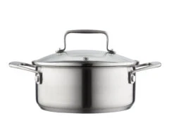 Die Töpfe der Morsø-Serie 79Nord sind satinpoliert und haben auf der Innenseite eine Messskala sowie eine Bodenstärke von 4,5 mm. Die dazugehörenden Glasdeckel mit Dampfloch sind aus gehärtetem Glas gefertigt. Die Töpfe vertragen bis zu 200 Grad im Ofen.
