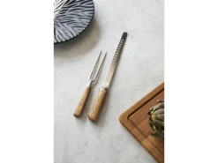 Die Messerklinge besteht aus hochwertigem Edelstahl und der Griff aus geölter Eiche, die bei Gebrauch Patina entwickelt und einfach schöner wird, je öfter das Messer verwendet wird. Der Holzgriff ist aus einem Stück Holz gefertigt und liegt angenehm in der Hand. Die Klinge ist mit Kullen (Mulden) versehen, die sicherstellen, dass der Fish nicht an der Klinge haftet.