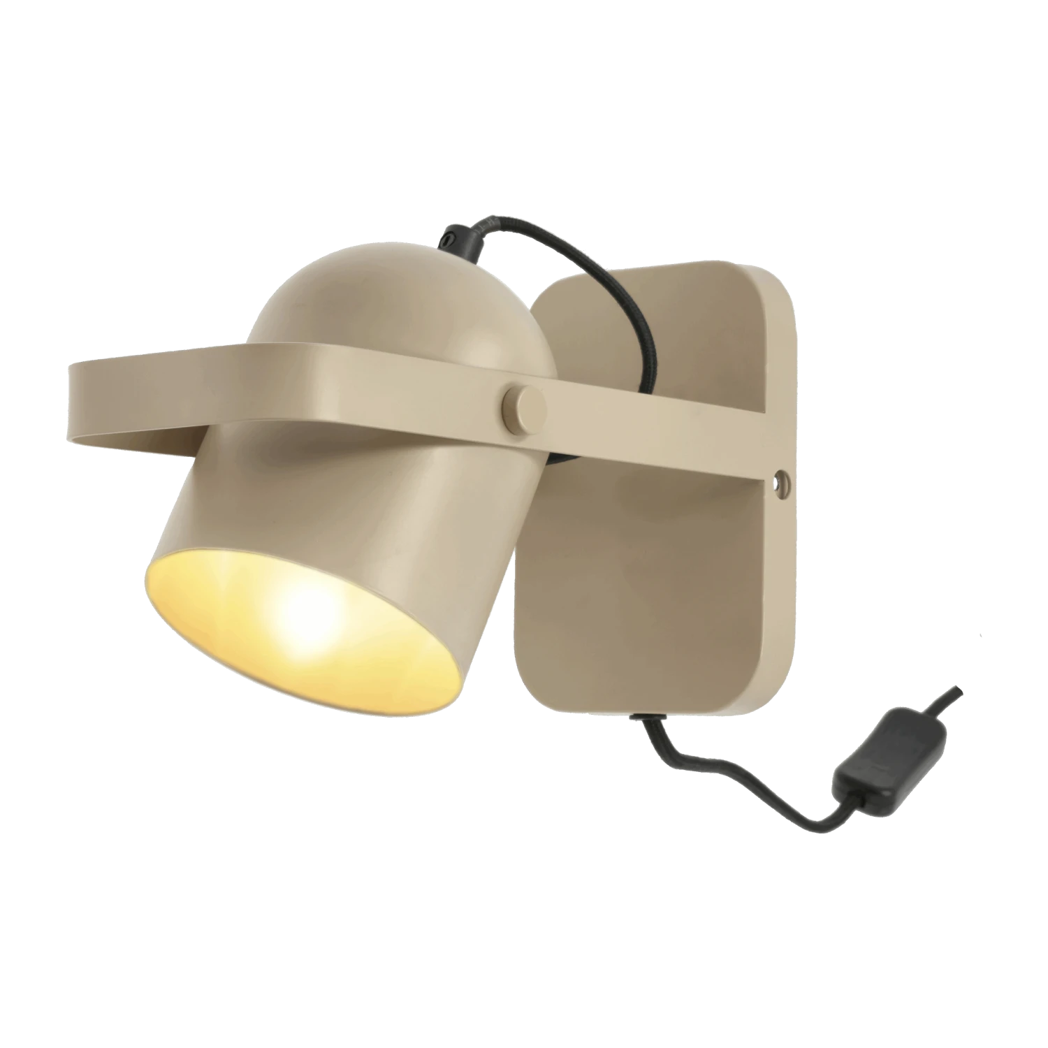Wandleuchte aus sandfarbenem Eisen mit einem Schirm, der gekippt und in die gewünschte Position gedreht werden kann. Die perfekte Arbeitslampe in der Küche, oder als Nachttischlampe im Schlafzimmer, wo die Schwenkfunktion beim Lesen im Bett nützlich ist. Die Wandleuchte hat ein industrielles Design, das hervorragend zu einem minimalistischen Einrichtungsstil passt.