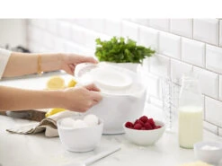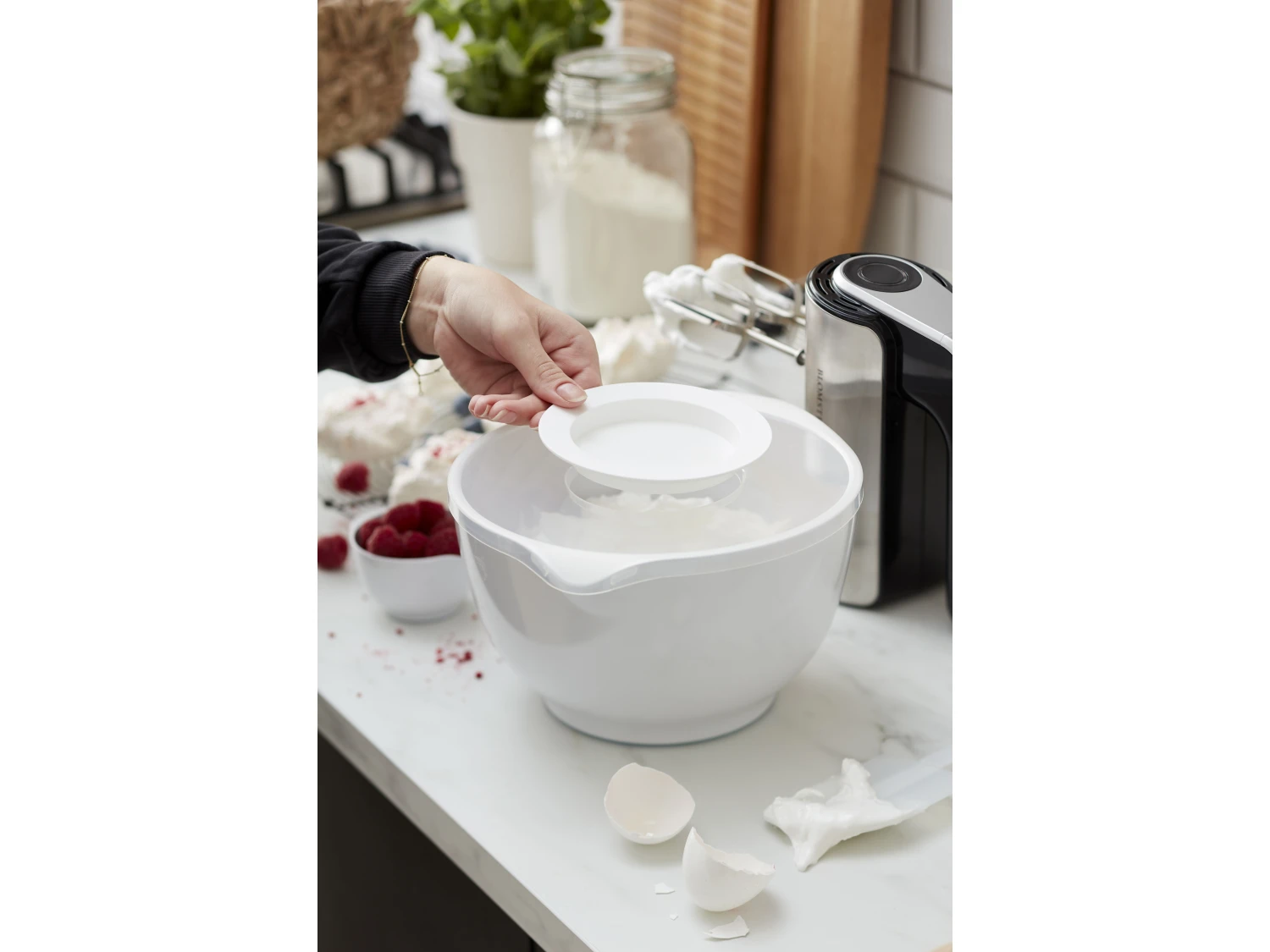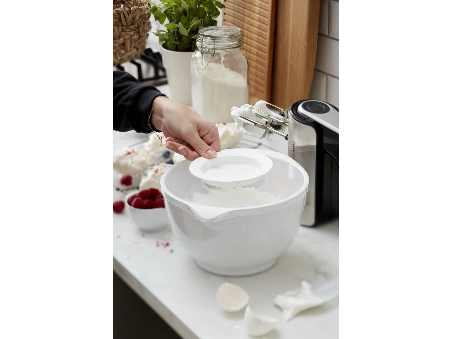 Super hübsche und beliebte Schale von Rosti. Die Margrethe-Schüssel eignet sich hervorragend für die Zubereitung, kann aber natürlich auch beispielsweise zum Servieren verwendet werden. Der kleine Deckel in der Mitte kann entfernt werden, sodass der Deckel zum Schlagen von Sahne o. ä. verwendet werden kann – oder Sie können ihn sitzen lassen und haben einen ganz normalen Deckel.