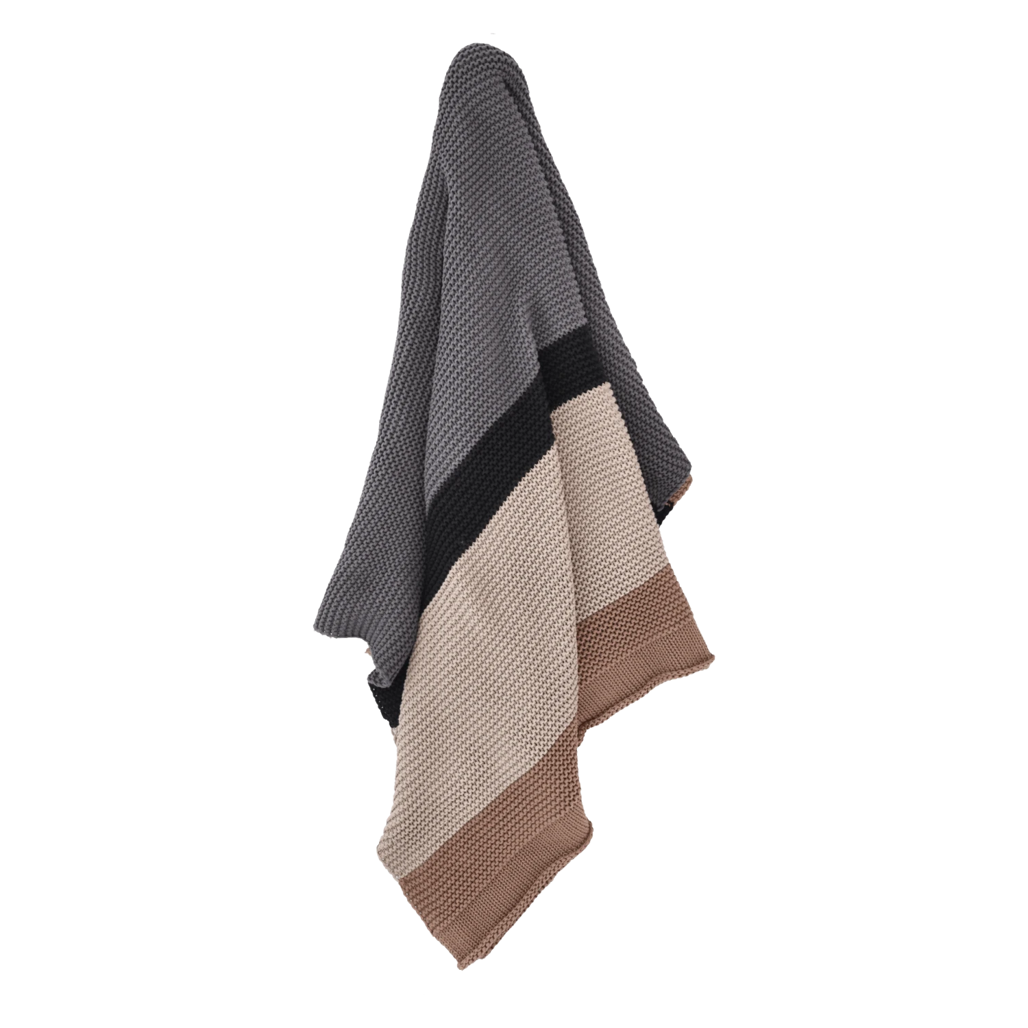 Kräftige Garne in einer Mischung aus Baumwolle und Wolle wurden zu weichen, rustikalen Accessoires für das Zuhause gestrickt. Das Strickmuster mit sichtbaren Schlaufen und dem offenem Charakter bietet jede Menge Textur und Struktur. Die breiten horizontalen Streifen sorgen für einen grafischen und minimalistischen Look, und die Farben sind aufeinander abgestimmt und neutral gehalten, um Bold Knit seinen gedämpften Charakter zu verleihen.