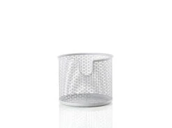 Köstlicher Metallkorb für den tisch oder das Regal, regeln Sie Ihrer Make-up, Wattstäbschen, Cremes oder Haarschmuck. Das Kurvendesign verbindet das maskuline Metall mit femininen Bögen und Schnitzereien, die es mit und ohne Inhalt dekorativ machen. Durchm. 12 cm, Höhe 10 cm.