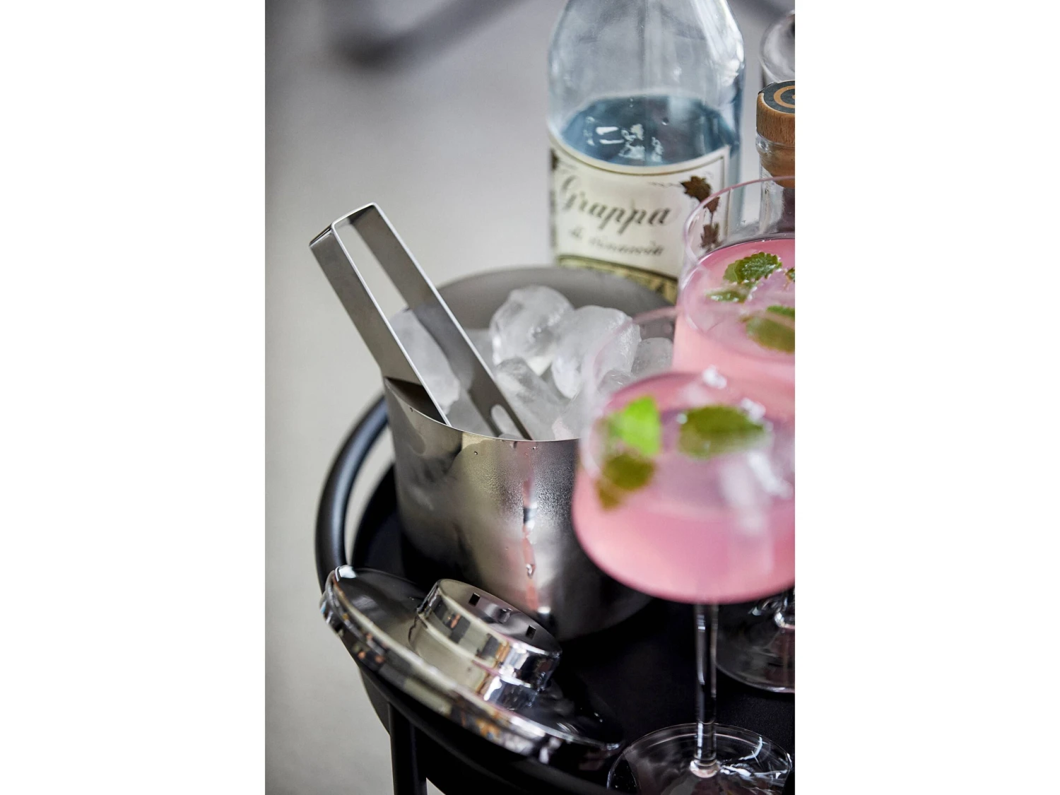 Das dänishe Designdue Mavro//Lefèvre haben dem überaus eleganten Eiskühler aus Edelstahl Entwurfen. Wie ein smelzendes Eiswürfel gleitet die leichte quadratische Form des Bodens in die Form des Kreises. Es endet mit einem Deckel, die auf Genialer weisse seiner Eiszange verstecken. 1,0 L.
